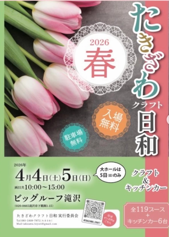 次回イベント出展 4月 4日(土) ~ 4日(日)たきざわクラフト日和