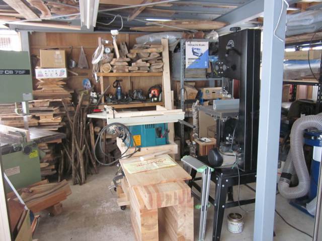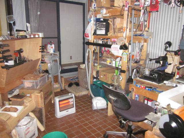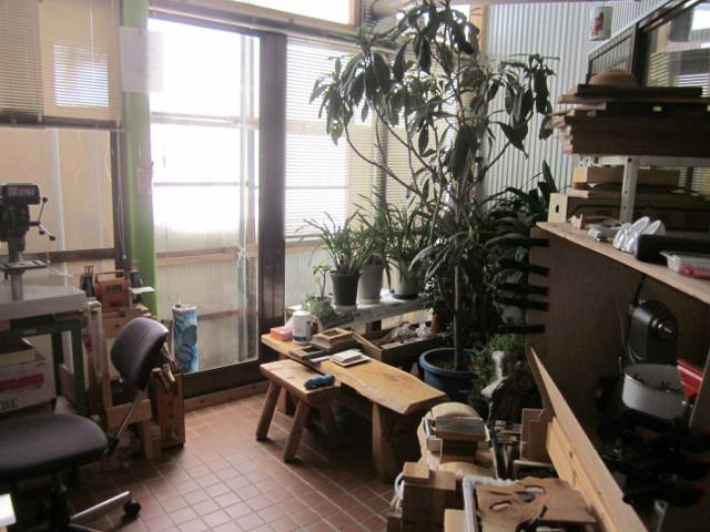 車庫を改造した工房で(このため車は1台処分)、主に原材料から