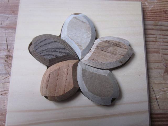 5種類の木を組み木にした、サクラのはなびらの箸置きです。