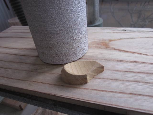 箸が転がらないように中を削り、自作研磨ロールで整形。