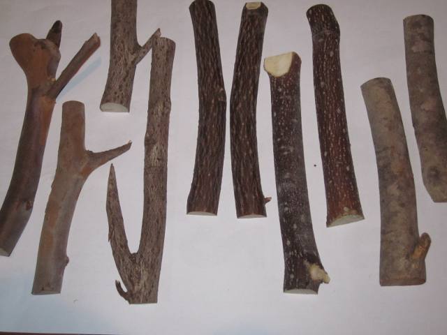 ナツツバキ、クロモジ、ミズキ、ツバキの2~3cmの皮付きの枝。