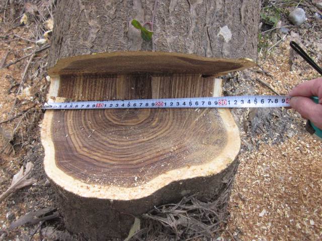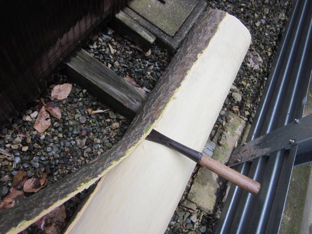 そして赤身のケヤキの古木をタテ型に、