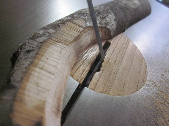糸鋸盤で窓部分を切り抜きます。