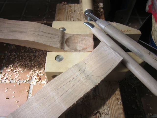 サクラ材を4x3x20cmに切断し、側面カーブでカットします。