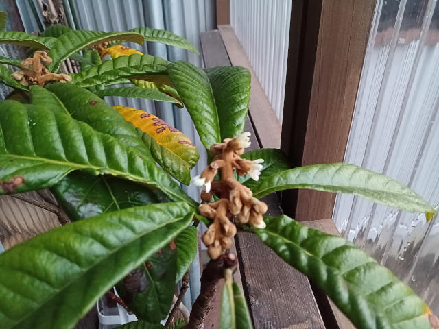 タネから育てた鉢植えのビワ