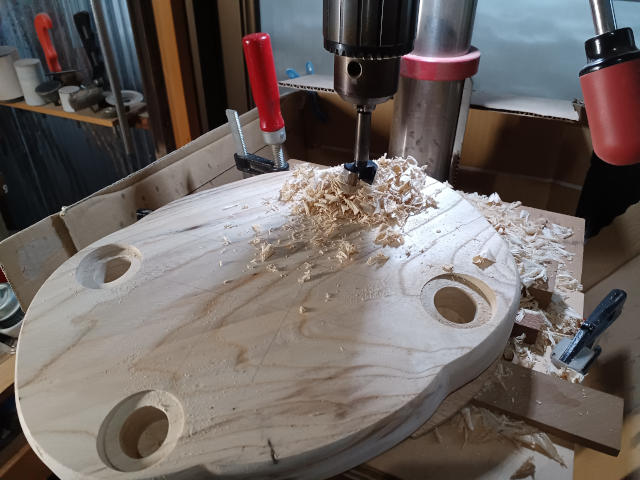 その座面にホゾ穴を加工し、脚の加工に入ります。