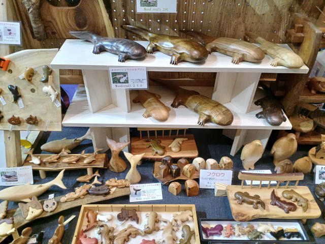 新作のオオサンショウウオオブジェ、カエル、クジラ・・