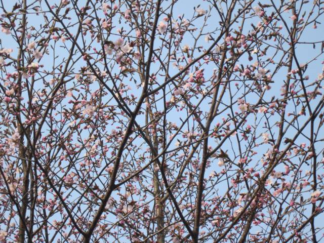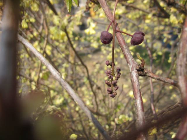 雌花(大きい二つ)と雄花が同時に咲けば、
