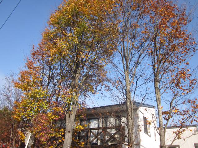 7割ほど落葉しましたが、一番大きなブナだけはまだきれいな紅葉を、