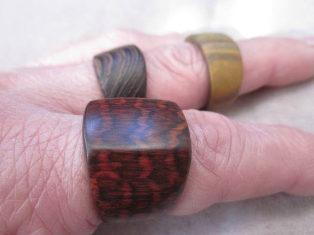 手前がスネークウッド、奥左がウェンジ、右がパロサント