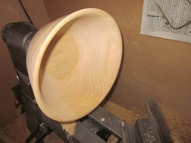 塗装前ですが、直径22cm、高さ10cmのサラダボウル完成。