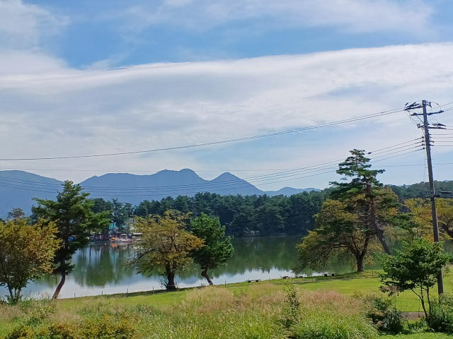 銀山温泉へ行く手前にある湖で、グラススタジオやレストラン